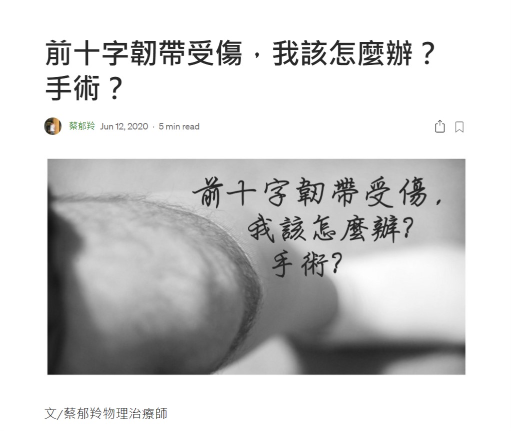 2021.01.15 【分享文章-前十字韌帶受傷,我該怎麼辦?手術?】文/蔡郁羚物理治療師