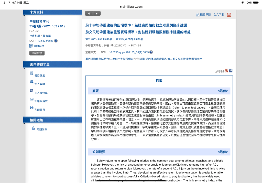 1、前十字韌帶重建後回場的再次受傷風險高,且健側腳的傷害率是傷側腳的兩倍。