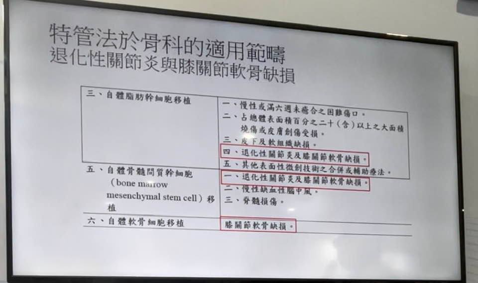 - 「脂肪幹細胞」治療沒有健保給付,治療費用需自費30萬,治療效用有至少28個月(目前的研究,更長的時間要看未來發表的論文結果)。如果患者本身治療膝蓋1個月要花1萬元的話,還不如做這個。
