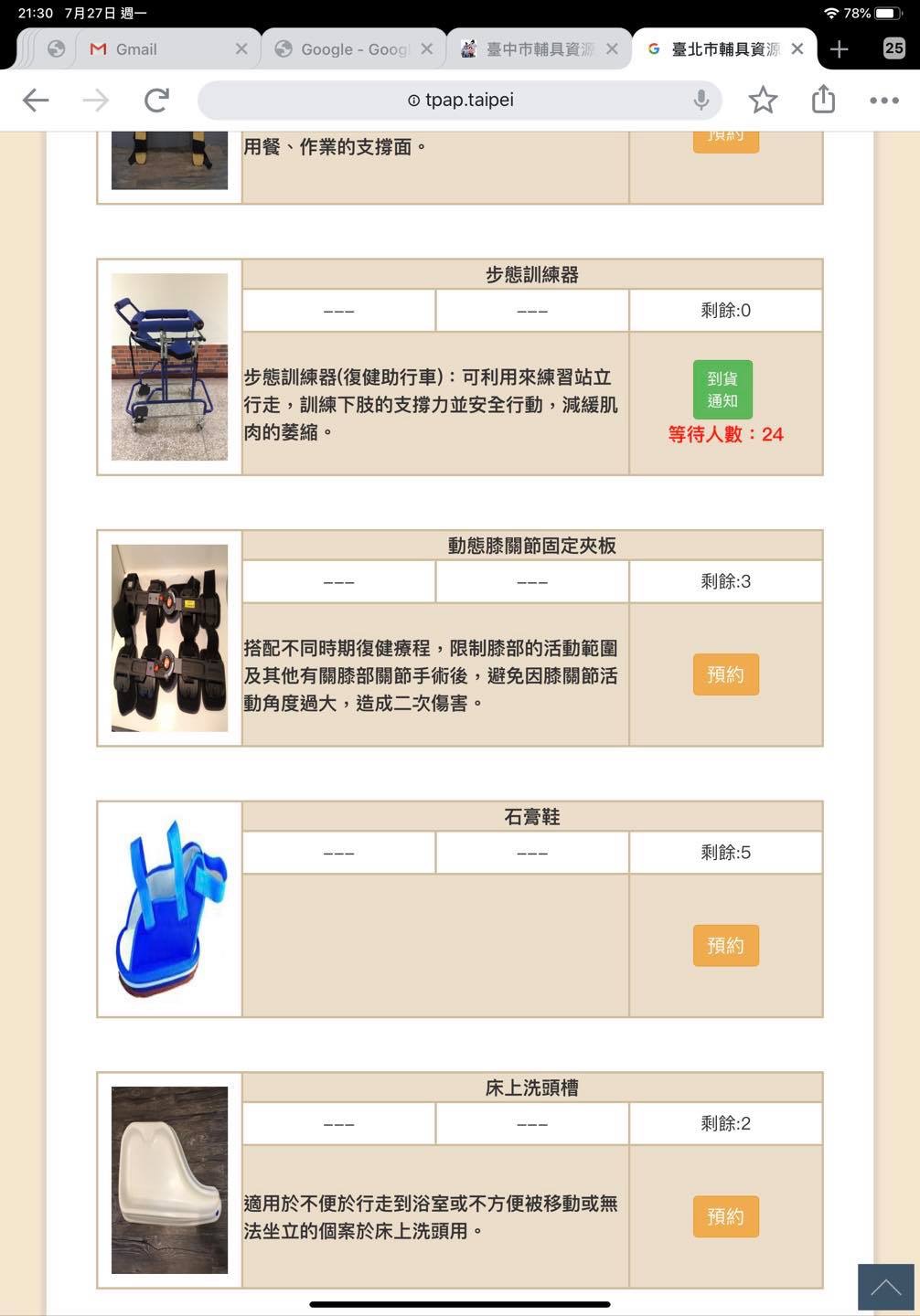 截圖來自:台北市輔具中心。http://tpap.taipei/app37/rentView/chooseCntcode