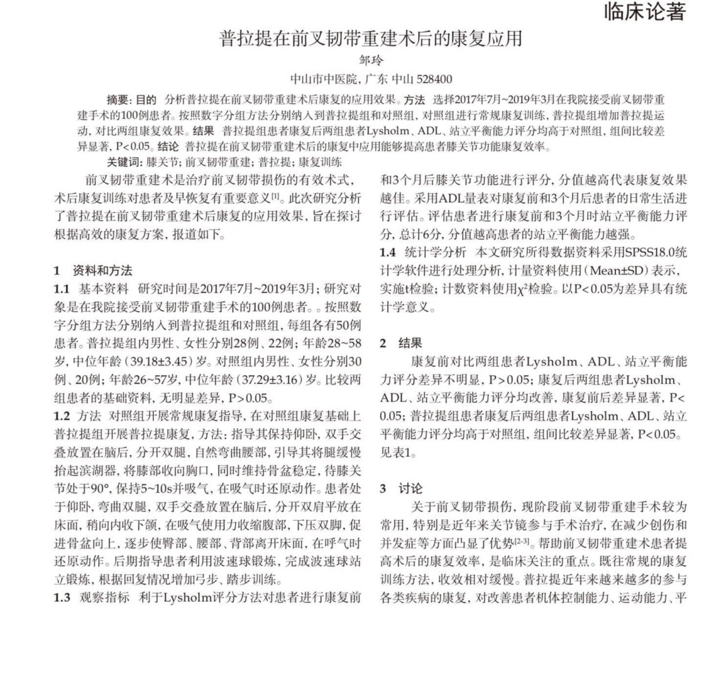 《普拉提在前叉韧带重建术后的康复应用》(詳見底下2圖)