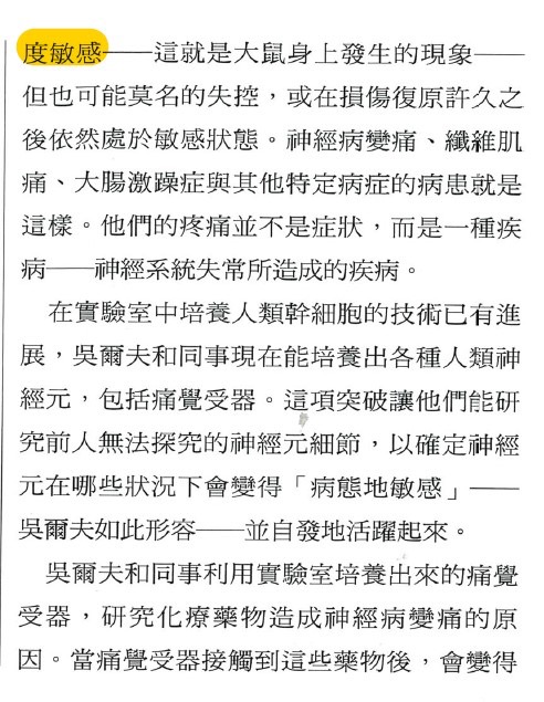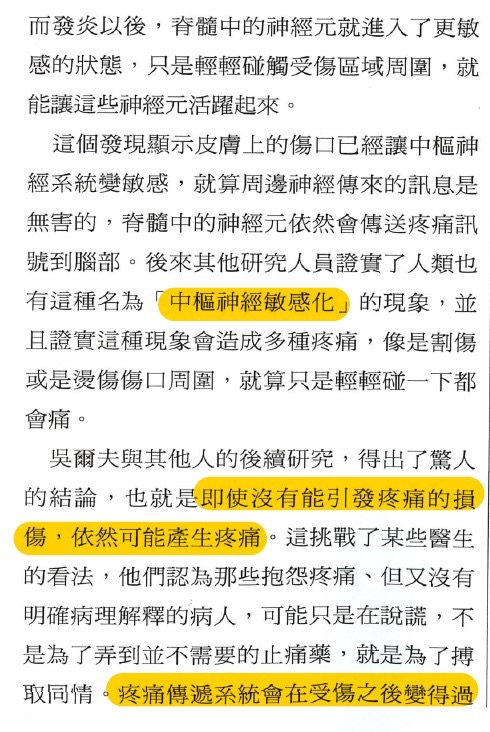 2.人類會有「中樞神經敏感化」,疼痛傳遞系統會在受傷之後變得過度敏感。