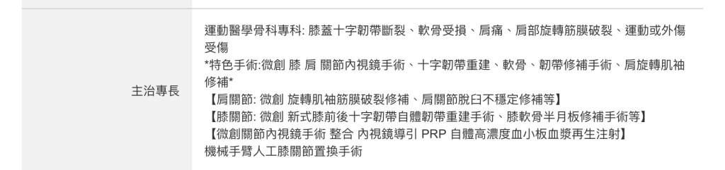 ❇醫院的網站上醫生介紹會有顯示主治專長,如下圖: